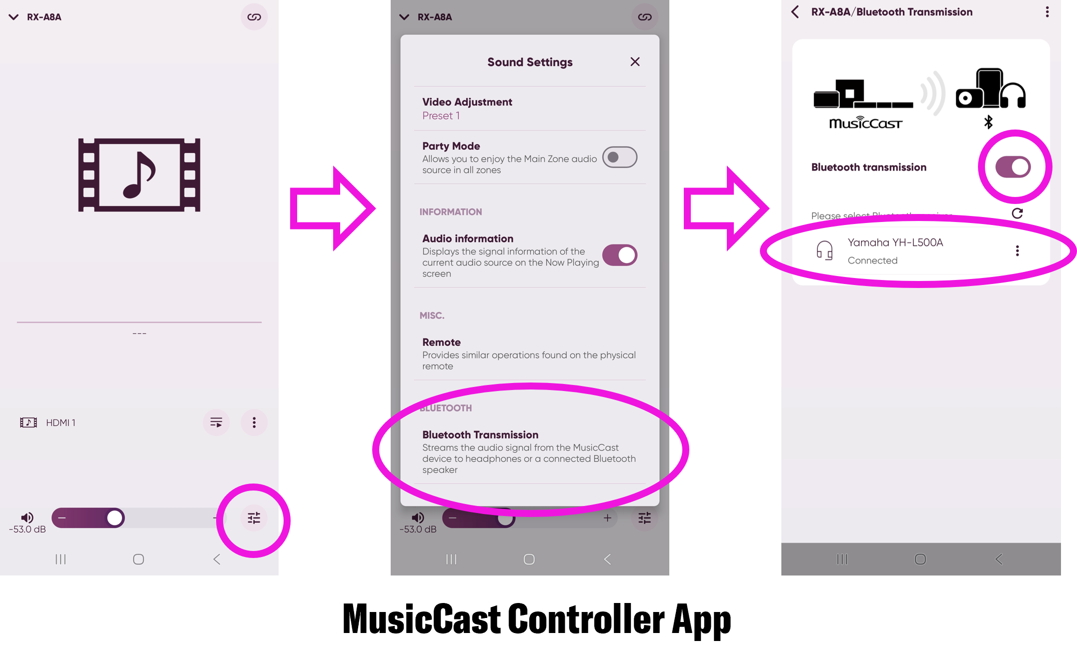 The simplest way to engage the Bluetooth Transmission function is through the free Yamaha MusicCast Controller app. Here’s how to do it: