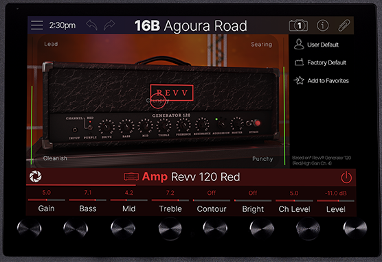 Stadium XL offers numerous advanced features, including a touchscreen control panel, Agoura Amp modeling, a Focus View feature and increased DSP (Digital Signal Processing), such as a “Hype” parameter. Let’s look at each in turn.